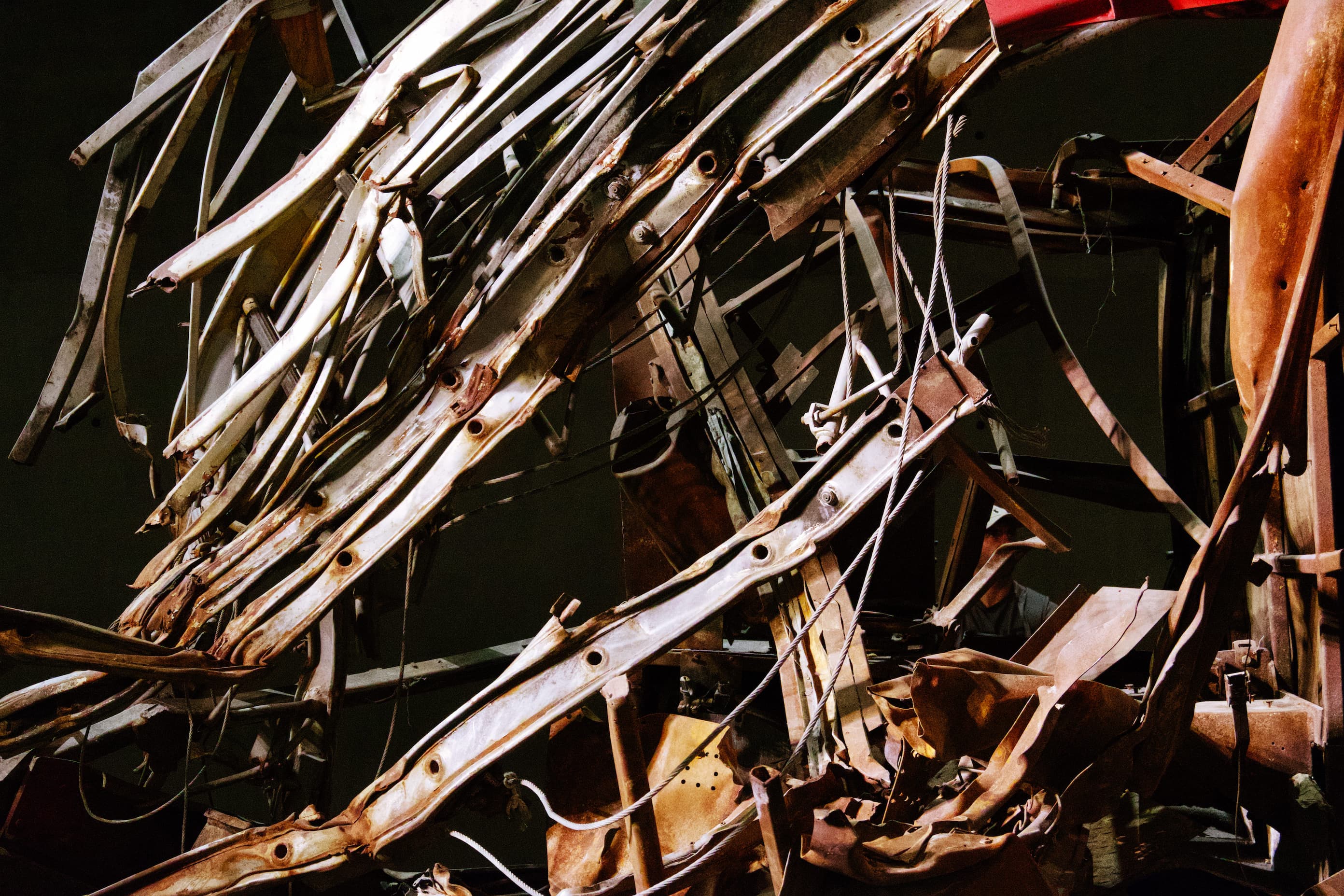 All through the memorial one comes across saved artifacts, original construction material, blocks of concrete, girders, shards of the building as well as a smashed ambulance and fire truck. Parts of the original construction have been integrated into the memorial itself giving us goosebumps. The twisted and severed metal structures (which should not be able to look like that) visually show the massive forces involved in the collapse of the towers.