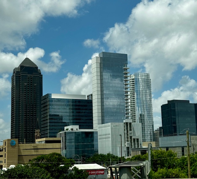 Dallas is vast. Flat. And beige. I don't know why, but this dominant colour makes Dallas – except for downtown which is attractive and interesting – a bit drab. It is also a car city. Probably because of the heat, this is a city not made for cyclists. It is a car dependent city with a myriad of large highways and expressways (running underneath the highway). With fast food joints, shopping and strip malls, and huge auto-dealerships just a slip-way to the right.