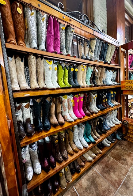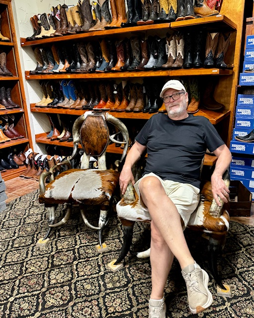 Then we were into the high-culture of looking at cowboy stuff. Karen has an innate desire to own a pair of cowboy boots so we went downtown to checkout what Wildbill's Western Store had to offer.