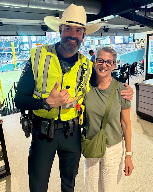 More than a stadium it is an entertainment complex and the F&B offering (with massive screens) is simply super and stupendous (and shows what can be done when you have the money to design a great stadium, including having the insight that women need bigger and more toilets than men). And the police are super friendly (handsome too hey!) and willing to be photographed with a strange woman with a strange accent when asked by my sister in law, Ali!