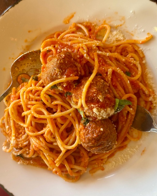 After off-loading from our Uber (we had dropped off our Budget rental earlier) we walked down the road to find somewhere to eat. We found a small Italian where Karen had the cannelloni and I the spaghetti & meatballs. Both good.